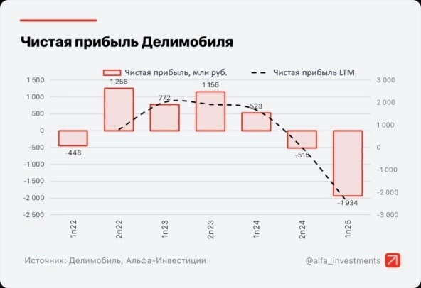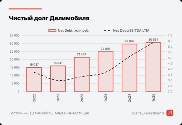 Из‑за роста долговой нагрузки компания ушла в зону убытков: начиная со второго полугодия 2024 года она не генерирует чистую прибыль. За первое полугодие 2025 года убыток достиг −1,9 млрд руб. — против прибыли в 523 млн руб. за аналогичный период прошлого года. - Долговая нагрузка